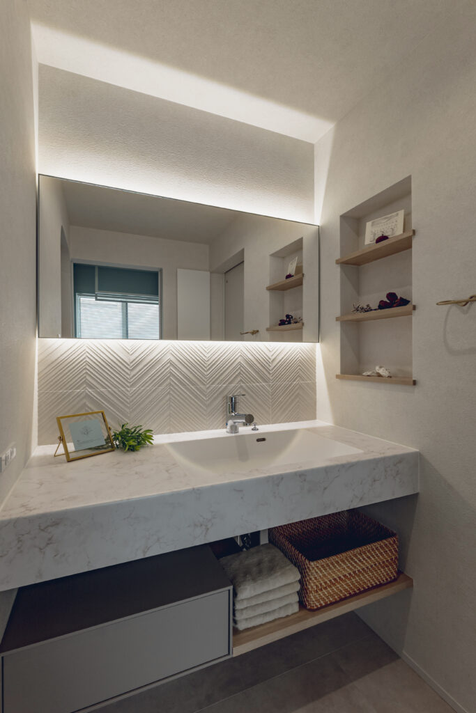 人気のアイテムを効果的に組み合わせた、お気に入りの洗面スペース。